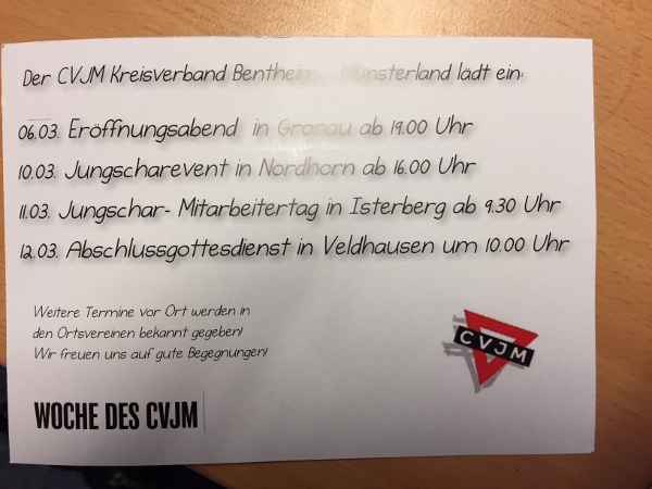 Der CVJM-Kreisverband Bentheim-Münsterland lädt ein.