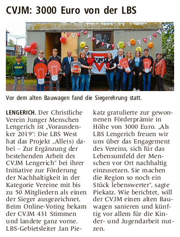 WN-Artikel zur Übergabe der Fördergelder der LBS